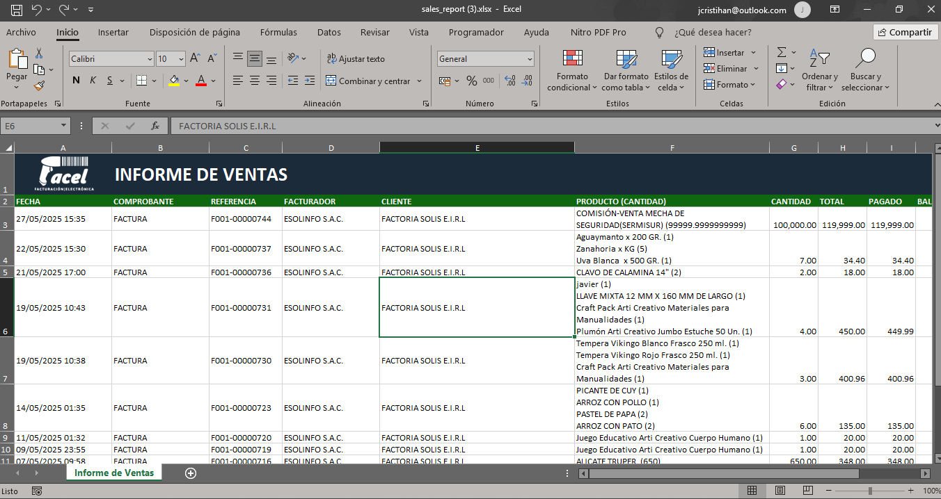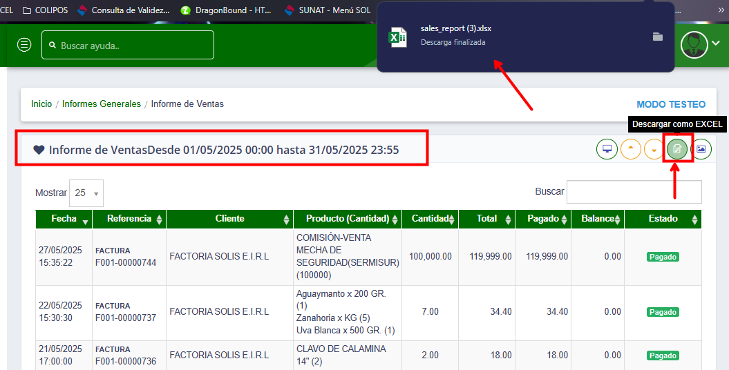 Con este reporte podrás saber que Productos se vendieron, con que comprobante se vendió dicho producto, que cantidad se vendió, a que cliente se le vendió, cuando se realizo la venta y si el comprobante esta en deuda.