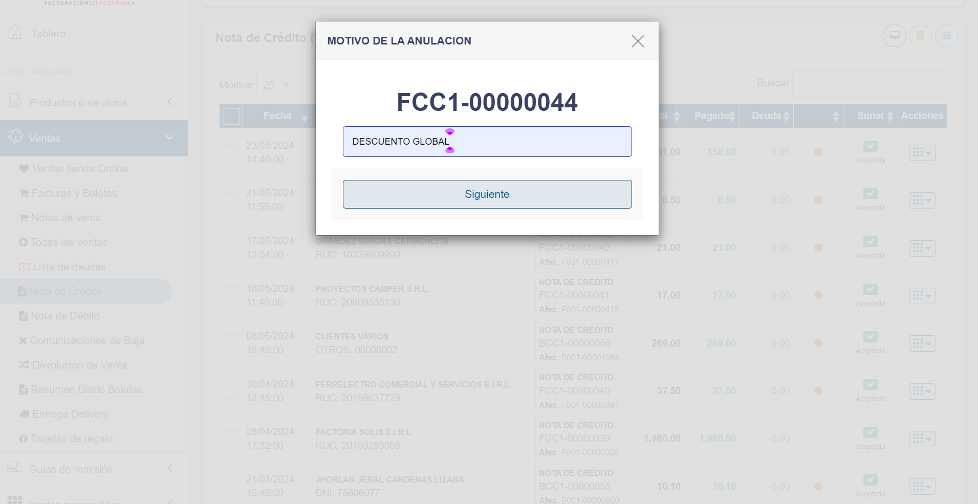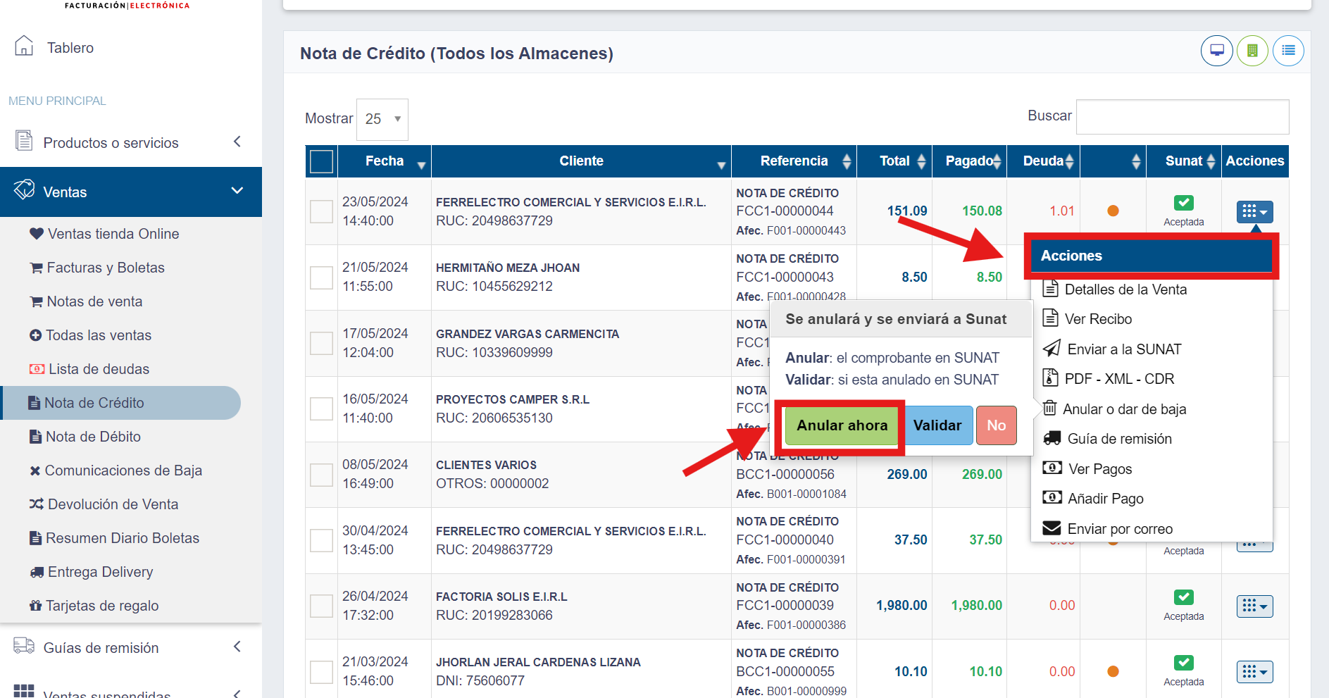 Seleccionamos la acción de Anular o dar de baja y elegimos el botón de ANUAL AHORA.