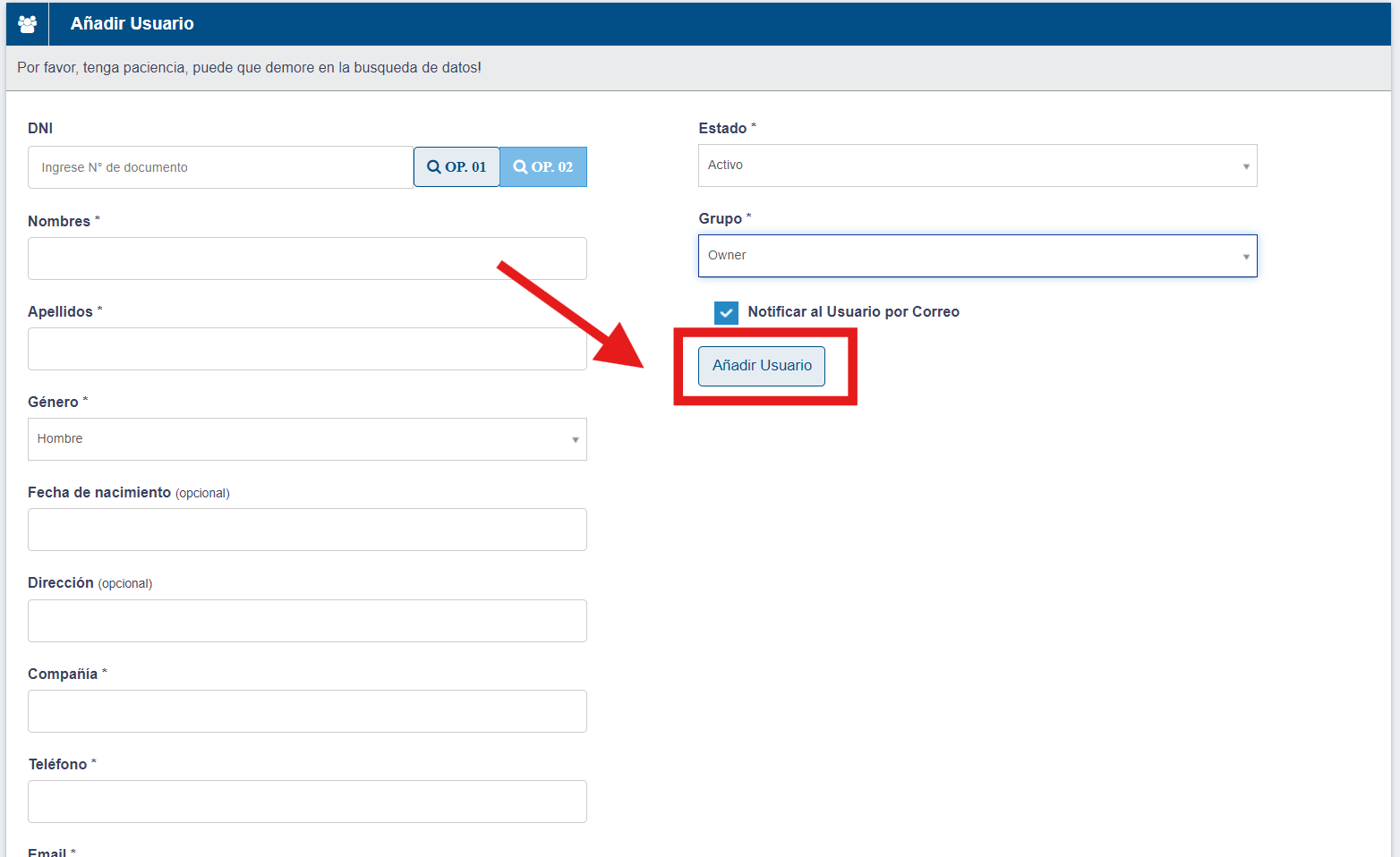 Llenamos todos los espacios en blanco, obligatorio (*). Luego, seleccionar a que grupo pertenece, como también podemos crear más grupos.