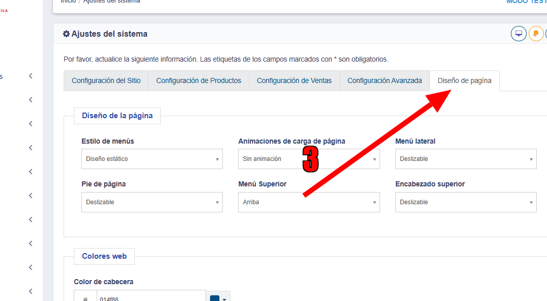 Aqui tenemos las opciones para personalizar el diseño de la pagina: