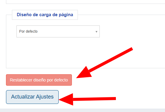 Cada ajuste tiene opciones variados, donde tambien se puede reestablecer el diseño por defecto.